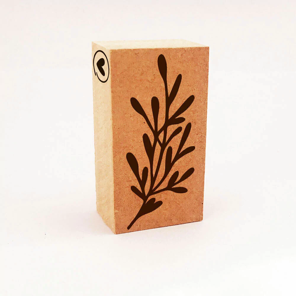 Sello prediseñado en base de MDF de 4,7 x 2,3 cm.